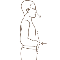 Push down with your stomach muscles. Exhale. (The center of energy is slightly below the navel, and the center of power lies in the waist and buttocks muscles).