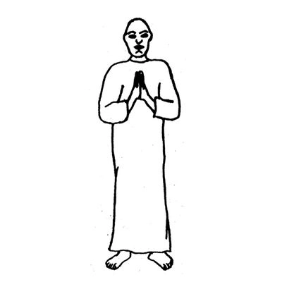 Placing the palms and fingers together in a straight line, assuming once again the praying position. [This represents praying for divine intervention – No Violence.]